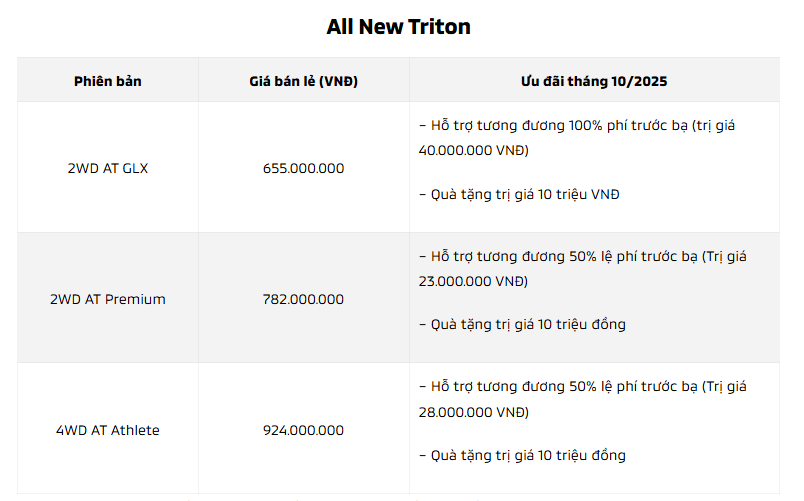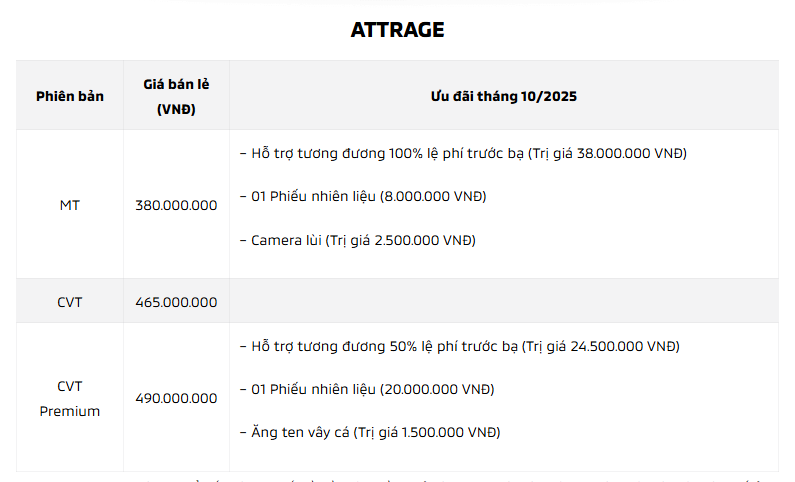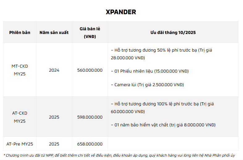 * CTKM áp dụng tùy phiên bản và có điều kiện từ hệ thống Nhà Phân Phối ủy quyền của Mitsubishi Motors Việt Nam. Khách hàng vui lòng liên hệ Nhà Phân Phối gần nhất để biết thêm chi tiết.